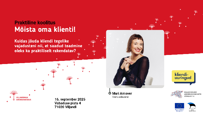 16. septembril 2025 kell 11-16 toimub koolitus teemal, kuidas jõuda kliendi tegelike vajadusteni nii, et saadud teadmine oleks ka praktiliselt rakendatav. Kõik algab kliendi...